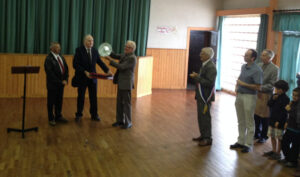 La remise du prix s’est faite à Quemper-Guézennec le samedi 12 juillet par Thierry Rouaud, président de l’Entente Culturelle Bretonne et Serge Nicolas, président du jury, en présence de nombreux membres de l’Entente Culturelle, de M. Le Maire de la commune, du représentant de la Communauté des communes, de Régis Le Vaillant, actuel président de « Racines et Patrimoine » et des membres actifs de notre Association et amis et de Christian Rivoallen directeur de Radio Kreiz Breizh et Jean Pierre Le Guyader, intervieweur de « Tud deus ar vro »